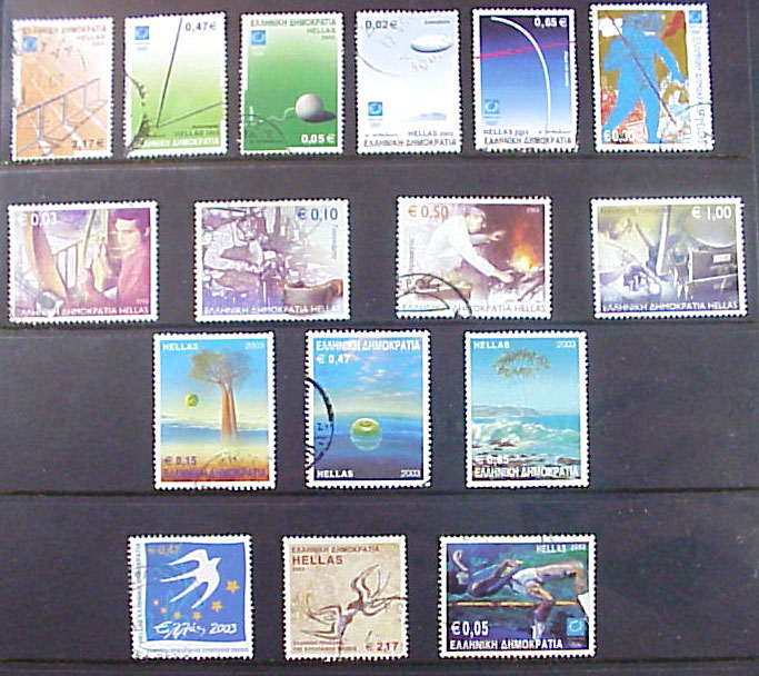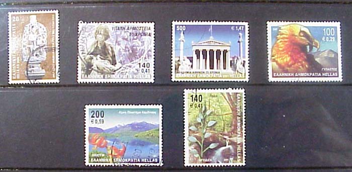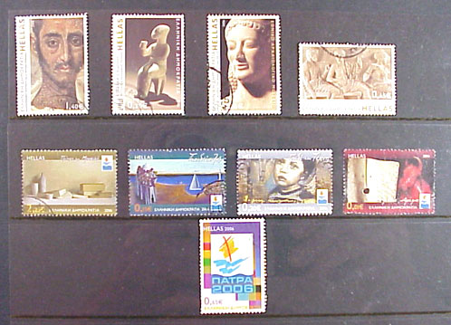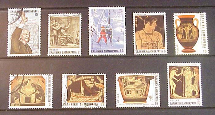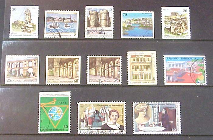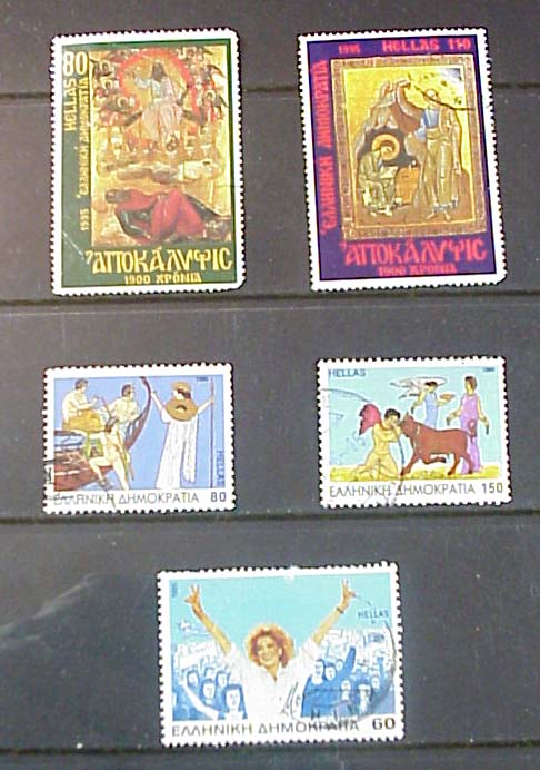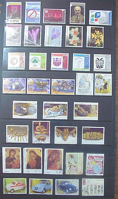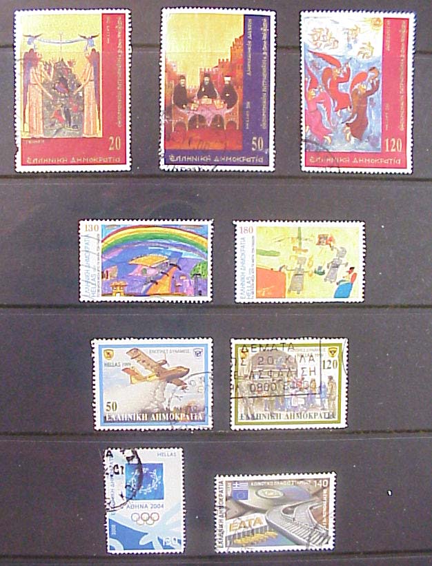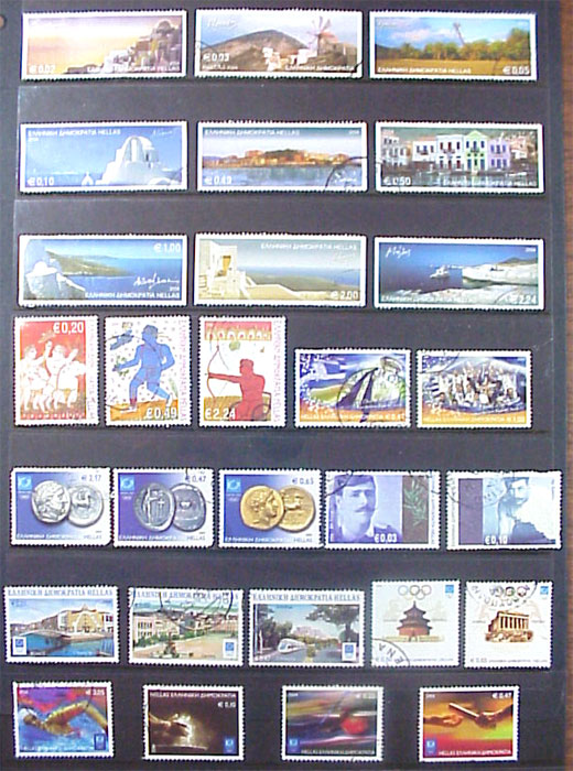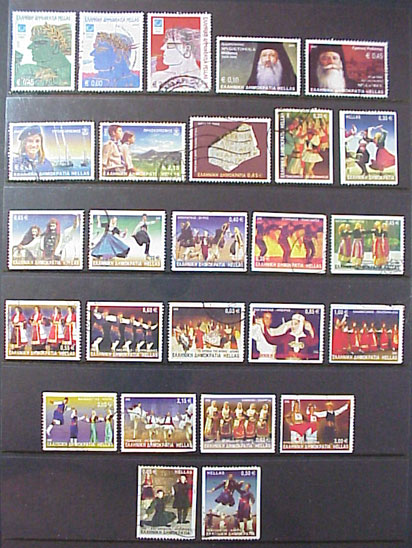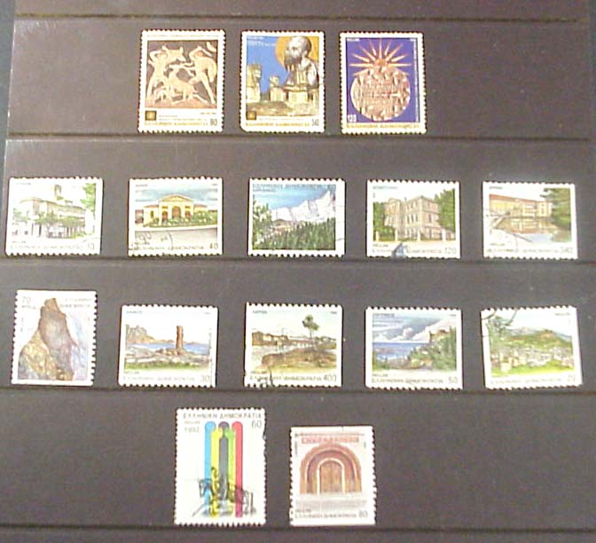 The Greek stamps shown below are presented by year ( listed below each page ). They are priced at 35% of Scott Catalog Value. Identify the stamps you would like by listing the year of the page, the row, and the number of the stamp from the left. For example, the bear stamp would be described as 1990, Row 1, Stamp 2.