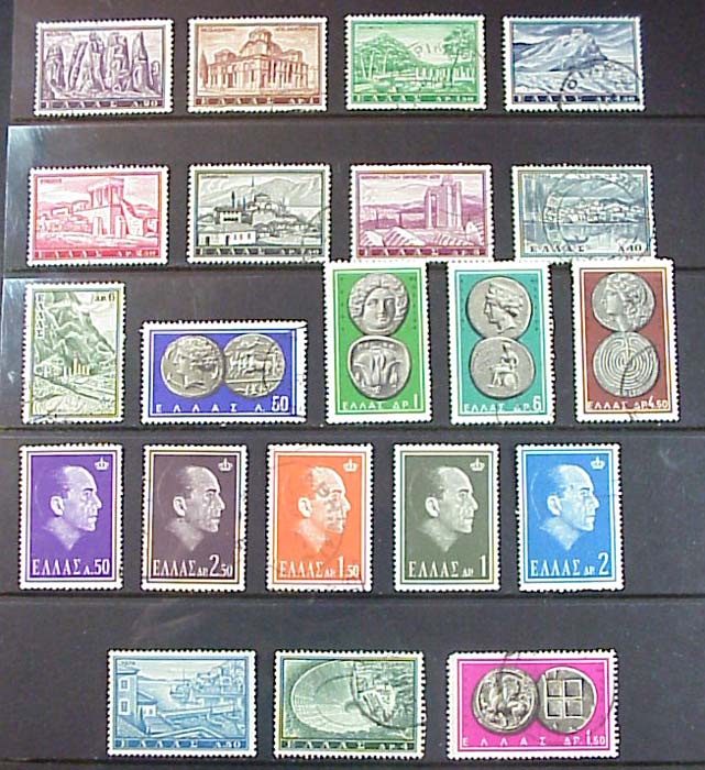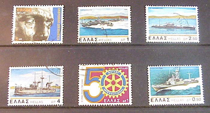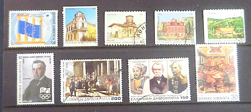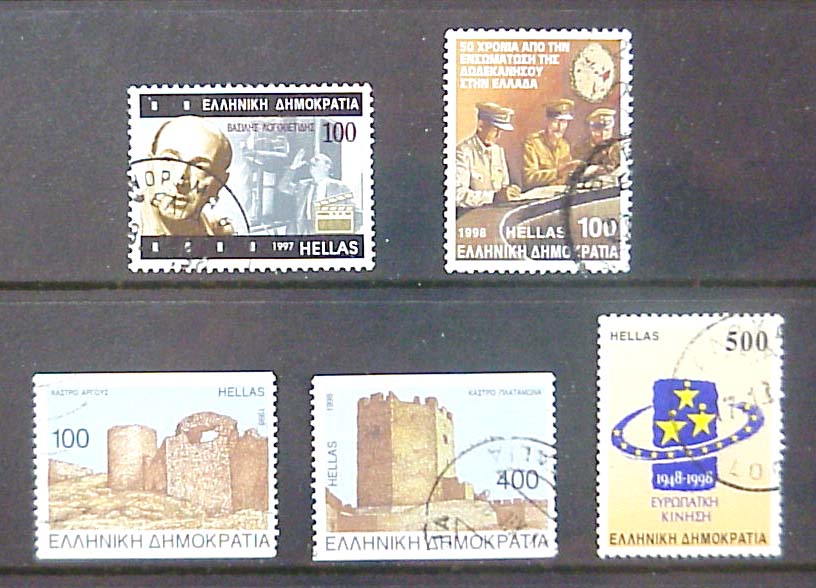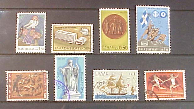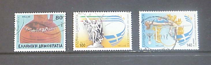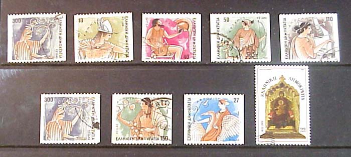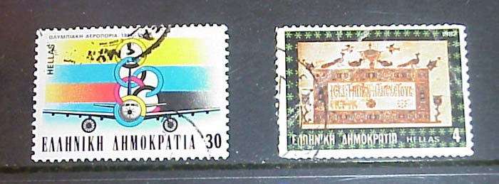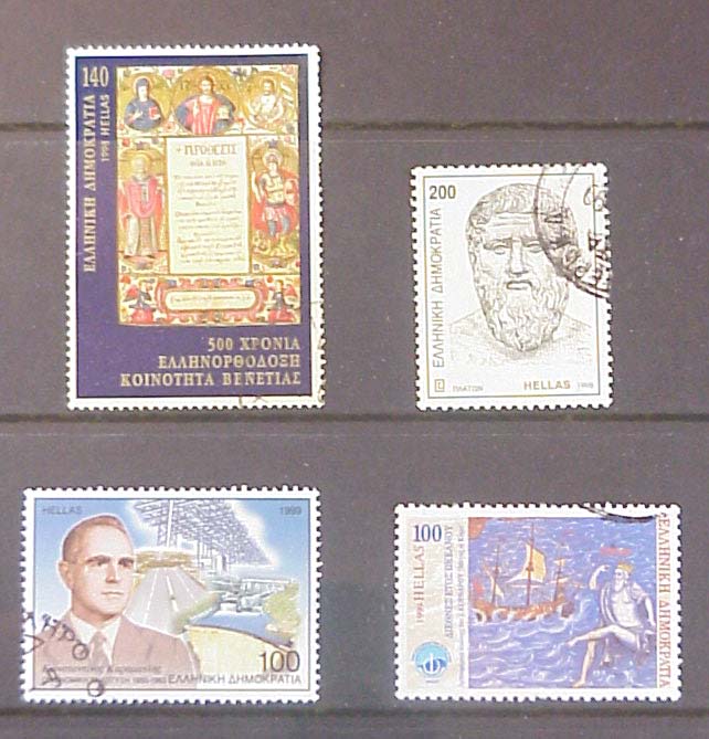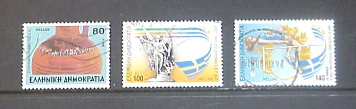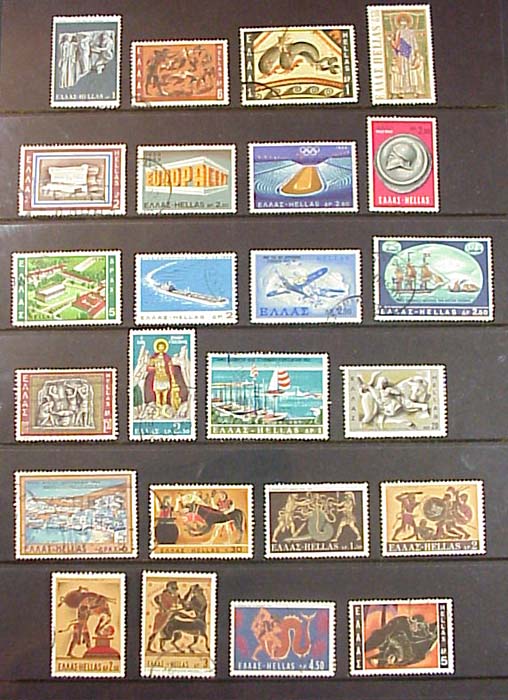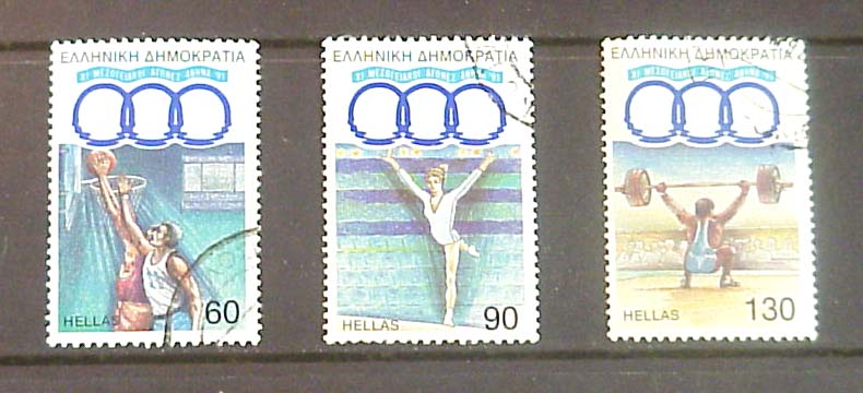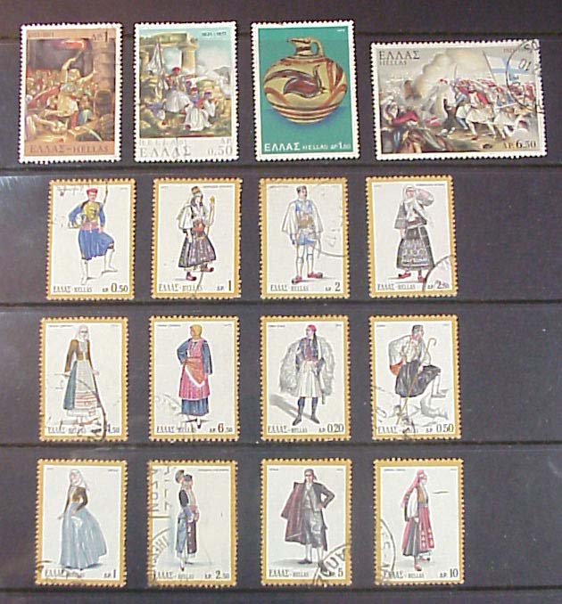 The Greek stamps shown below are presented by year ( listed below each page ). They are priced at 35% of Scott Catalog Value. Identify the stamps you would like by listing the year of the page, the row, and the number of the stamp from the left. For example, the bear stamp would be described as 1990, Row 1, Stamp 2.