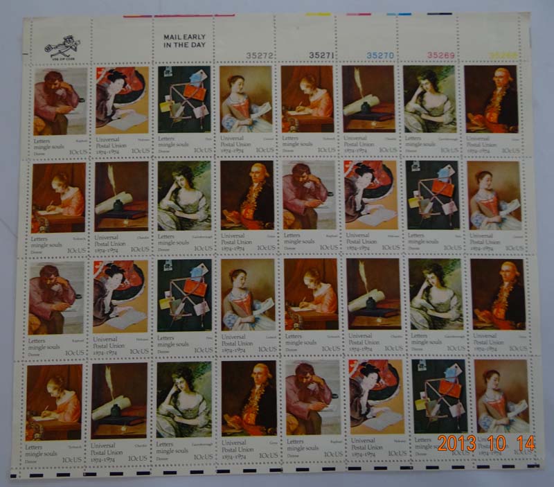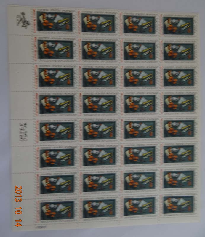 This page contains various individual United States sheets for sale. I price these sheets below normal market value ( Usually discounted around 35% from the lowest Ebay Prices found ) to make them more affordable for all collectors. I hope you enjoy them. The price for each is listed with that item along with its 2011 Scott Catalog Value and Face Value. The total shipping and handling costs for your order will be determined separately to ensure proper combined shipping costs. Request the item by its Scott Catalog Number listed below it.